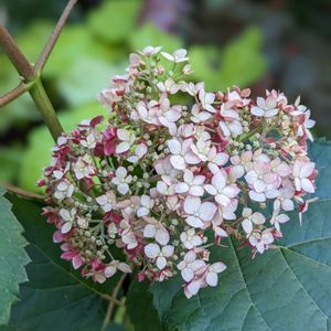 ピンクのアナベル2 ベビー苗を昨年秋に買いました。 何度も強風にあい、枝は四方八方にクネクネしています。咲き始めです。