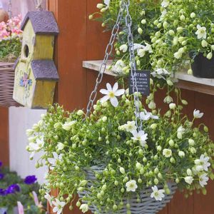咲き始めました♪ #クレマチス #カートマニージョー ! このカートマニージョーの美しさは、なんといっても満開時!✨。 真っ白なドレスのようにほんとに美しい! 。 その素晴らしさを知っている方が増え、蕾でもどんどんなくなってきております! お早めにご購入ください😊✨。 。 吊り鉢もよし!アーチにするもよし!✨。 楽しみ方が沢山❤️。 。