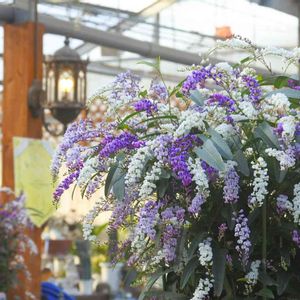 この時期、一際目がいく人気の!#ハーデンベルギア 。 3色のコントラストがとても綺麗な花鉢です。 春から地植えできます。 常緑で、毎年花を咲かせます。 。 アーチやフェンス、などに最適です😊✨。