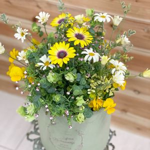 今日は雪が積もって大変でしたね!ですがそんな雪の日はお外で頑張ってるお花たちに元気をもらっています✨。 。 #オステオスペルマム ブルーアイビューティー #ローダンセマム レトロクラッカー #コロニラバレンティナバリエガータ #オレガノロタンダフォーリア #花かんざし 。 。 黄色は春を呼んでくれる色な気がします😊✨。 今からふんわりとした色合いのお花がたくさん! どんどん楽しくなるフラワーウッドへ是非お越しください!