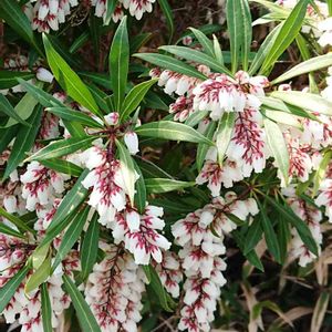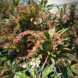 リュウキュウアセビ(Pieris) ツツジ科、アセビ属 原産地: 日本 ⏺️アセビ(馬酔木)は、自生が見られるが、リュウキュウアセビは、野生では絶滅。 ⏺️白花を多数つける。 (馬酔木より、少し大きい)✴️真ん中やや、下に花が咲きはじめています。もう少しで満開になります。 ✴️名前の由来―2つの説があるらしい。 ⏺️①.葉や茎には有毒のアセトボキシンが含まれているため、馬が食べると毒にあたってふらふらとした足どりになることから、 「馬酔木」と書かれるようになった。 ⏺️②人が食べると足が痺れることから、「足しびれ」→「アセビ」となった。 ⏺️生垣に向いている。 ⏺️挿し木が容易。 🌕花言葉は「犠牲」「あなたと二人で旅をしよう」 (fromNet🔍👓) thanks to きたてい,HIDE, and ピノコ