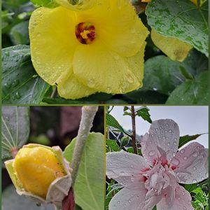 大好きハマボウの花が咲き始めました。 優しい色のムクゲ どちらもわが家で30年以上も楽しませてくれています。 2023年6月30日撮影です。