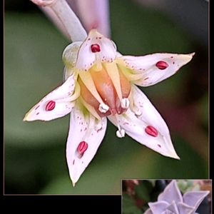 我が家の数少ない多肉さん 数年前にママ友さんから頂いた「朧月」に初花 星型でガラス細工みたいてとても可愛いです♡♡٩(。•᎑-。)۶。˚✩ 2023年4月14日撮影です。