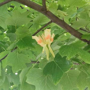 今年もユリノキを見に行きました♪(5月22日) 大阪府堺市、大仙公園内の 七観音古墳付近に10本ほど植わっています。 花びらが沢山の落ちていたので、満開は過ぎて少し残っていた感じでした💦 堺市ではここ以外見かけた事がありませんが、街路樹として全国に植わっているみたいです🌿 花がチューリップみないな形をしているので、チューリップツリーとも呼ばれているそうです🌷