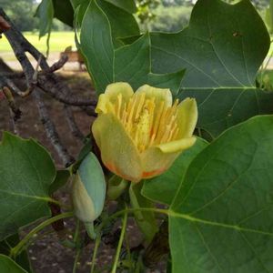 「ユリノキ」少し前に見た時まだ蕾だったので、まだ先と思っていましたが、別の公園で咲いてました。💕 2年前に初めて見て、こんな大きな花が木の上で咲いている事にかなりビックリ‼️ ユリというよりは、まるで「チューリップ」です。😱😰🤗