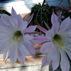 知り合いから送って来た多肉植物の美しい花 ①サボテン科エキノプス属 ②ベンケイソウ科エケベリア属