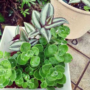 今日のお花✨ アロマティスカス🍀 この子は挿し芽で増えた子です❤️ ムラサキゴテン ゼブリナ セダム🎶 今年お迎えしたての、子たちです🍀