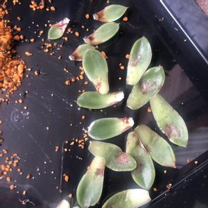 ネット購入した多肉さんの葉っぱがこんな感じに💦中心部までこんな感じになっていたので解体しましたが、1個も無事な葉がない‼️葉挿しも出来ないかな〜!?😱 何かの病気でしょうか? 8個中2つがこんな感じになって来てます💦