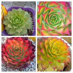 センペルビウム マジックジェムゴールド 昨年10月に お迎え(左上) 今 (左下) 右その間 どの時も ええでね ٩(๑´0`๑)۶