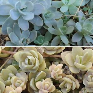 地植えの子持ち蓮華の ランナーを小さな鉢で育てました。 小さな子達が鉢一面に増えて可愛い~(下) 地植えの子と色も感じも違います❤️💕♪v(*'-^*)^☆