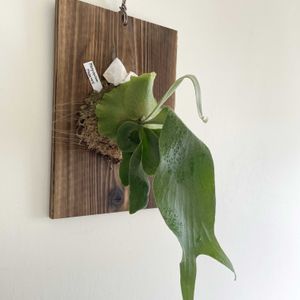 platycerium maserati Ψ✨ ビカクシダ マセラティ (P.Mt.lewis x P.hillii paopao) from driftwood.smookeywood🦌 コルクを選んでくれて綺麗に板付した状態で届きました🙌 株の角度や苔増し、コルクの加工など大変勉強になります🤔! 目指せ親株…いや親株越え💪🔥 にしてもコルクでかっ😂🤣 60センチくらいありますw 狭いとこでごめんねマセラティ😂🤣