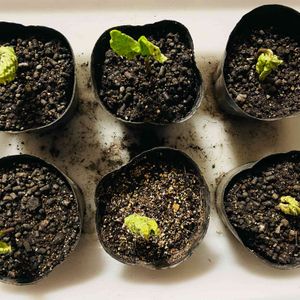 白花夕顔がやっと発芽しました🥰👍 1回目2回目は発芽せず…昨年収穫した種は全て不発に終わりました😰 三度目の正直…ホームセンターで購入し 8日目に10個中6個が🌱嬉しいです🥰👍