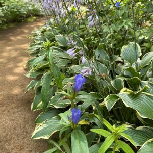 今日のお花🌸リンドウ🌸 ①上川町の大雪森のガーデンにて ②仏壇用に買ったお花💜💙 ③④ 大雪森のガーデンにて ⑤ガーデンの駐車場より📱