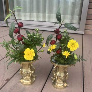 本日鉢植えのブルーベリーを剪定しました😊✨ そして・・ 丁度、仏様の仏花が菊だけで寂しく、個人的にシキミが今一つ好きでないので、不謹慎に当たるかも分かりませんが、このブルーベリーあしらっちゃいました😚💞ちょっぴり紅葉気味で、ヤバイ可愛すぎるっ🤩✨と、一人でテンション 爆上がりしてました💦スィマセン