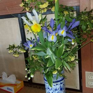 アイリス、シラン、シンピジウム沢山咲いたから、仏様に❗️