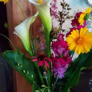 友達の庭で咲いた花を仏花に❗️