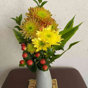 おはようございます。 本日は父の命日👴…孫達からのお供えのアレンジ💐 米寿を迎えた母は、もう京都までお墓参りは難しいと😢 昨年最後のつもりでお参りしましたが🙏 なんとナビさえ有れば何処へでも…と🤣 度胸だけは長けている次女が昨日🔰付けて京都へ🚗💨(主人は海外赴任中なもので…😅) 1時間10分程で到着にびっくり🫢 母もまだまだお墓参り出来そう(笑) 気候も良く秋の🍁の時期に毎年早朝に京都へ家族でお墓参りは恒例になりそう(*^^*)ある意味父に感謝😆