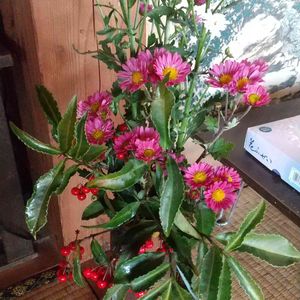 お正月支度 農園は人でいっぱいでした。 少し地味かな?赤い菊に惹かれて購入しました。