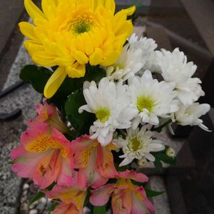 こんにちは😊 今日は祖父の月命日と新年の挨拶がてら お墓参りに行ってきました🪦 仏花は菊とアルストロメリア💐 色が少ない冬なので 華やかな色合いで決めました✨ 実はこれを買ったお花屋さん、 日曜日で閉店との貼り紙が🏷️ スーパーの隣にある花屋さんが 次々なくなっていくので寂しいです😥 今日も1日元気に過ごせますように🍎