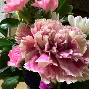 19日に撮ったPicちょっとゴージャスなカーネーションで綺麗な✨仏花を娘婿が買って来てくれ…ひい婆ちゃん(母)の誕生日102歳でお星さんに☆チビ孫が今年107歳やひい婆ちゃんだって( ´艸`)