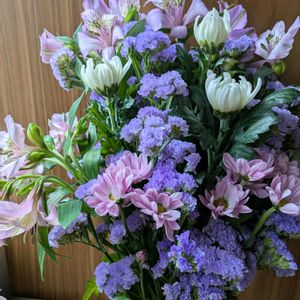 お疲れ様です(。・ᴗ・)_🍵 帰りにお花屋さんに寄りました🤍💜🤍🌿💐 カラオケ🎤(σ゚∀゚σ)⌒♬ 大好きだった兄に💐花束を☆。.:*・゜𓂃𓂂ꕤ*.゚
