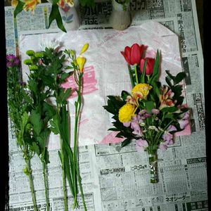 今日は咲きすぎたお花🌷と、新しいお花🌷を取り替えていきます。 ラナンキュラス1本、チューリップ1本をはずして… 大菊、スプレーマム、フリージアをたします。 部屋が暖かいので、チューリップが思ったより早く咲いてくれました❗