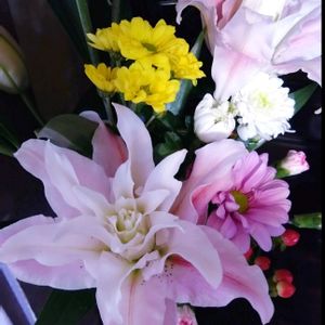 今日はお正月仏壇に密かに飾ってあったお花🌸🤗 珍しく黄色い菊で無く、素敵な色のマムとゆりとグリーンがかったカーネーションと家の南天💞 3️⃣昨日、今年初めてのリビングの観葉植物の水やりと日光浴🪴嬉しそう🥰✨✨ 4日から娘が高熱を出して💦💦💦今日病院😅 主人も私もうつって無ければ良いが、心配は続く😨 今日も皆様にとって素敵な日になります様に🤗💞✨✨