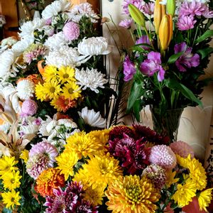 供花です。今日が叔父の祥月命日なのですが、先日お墓参りへ行ってきました。 輪菊の入った仏花を買いたかったのですが、夕方前に行ったら売り切れで、季節のお花ミックスに… 千葉県 1月9日撮影