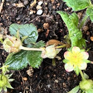 今年お迎えした女峰🍓 食べる気満々でお世話してますが、種がごっついのは実が大きくならず食べられず摘み置きしてあるような…。 取りあえず余計なことは考えず食べることを夢見てお育てしましょ💕🍓💗