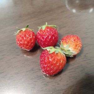 去年買った苗の孫ちゃん苗からの収穫した🍓いちご🍓 去年はもう少し大粒だったのになーと寂しくも美味しかったです。他も枯れずに食べられるくらいに実るといいなぁ