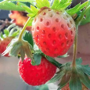 今日のイチゴ🍓 少し赤みを帯びてきました😃 小粒ですがこのまま収穫までいけるのかどうか見守ります♡