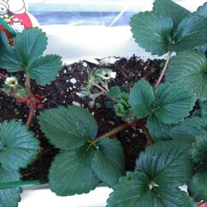 女峰です🍓 花が落ちましたが、実は大きくなっていません。 タイミングを逃して殆どがキチンと受粉出来ていません(笑) 出来ていなくても少しは大きくなるのか見る為にこのままにして置きます😅 真ん中の株は右側の元株からランナーで伸びた子株ですが花を一つだけ咲かせました。 伸びすぎた葉を少しカットして気付いたのですが、これももう雄しべが固くなって来ていて、上手に受粉出来てないと思います。 一緒に付いている花はこれから咲くので、上手く受粉してあげたいなぁー。 ※みどりのまとめにも追記