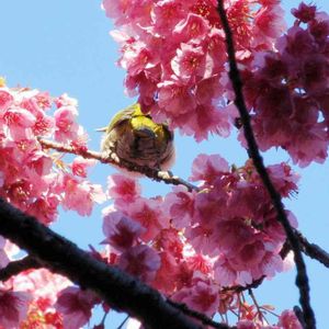 同じく西伊豆 萬福寺の土肥桜🌸 メジロちゃんの、これは後ろ姿かな?向こうにクチバシが見えているような? 動きが素早くてこんなのしか撮れなかった😅 2月初旬の過去写真です。