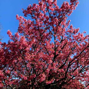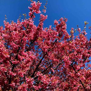 静岡県の清水で見かけた土肥桜。 土肥は「とい」と読みます。 土肥桜は河津桜よりも1週間ほど早く開花する桜で、色は濃いピンクです。