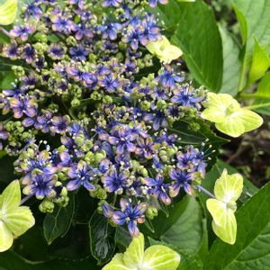 アジサイ大島緑化 遂にお迎え出来ました〜 3年前からの念願達成(⌒▽⌒) 可愛い💕💙💚 花も萼も超可愛い💕💕💕 宝石を集めたような可愛さです お値段もそれなりですがお店の人は昨年と同じ価格だけど植木鉢が昨年より大きくなって花も沢山ついてるよ〜 絶対今年のがお得だと力を入れて教えてくれました