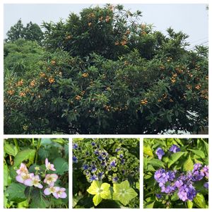 枇杷が沢山色づいてきました 雨が降らずに 2、3日晴れてくれると もっと甘くなるのになぁ😊💕 大島緑化という紫陽花が綺麗に咲いてます