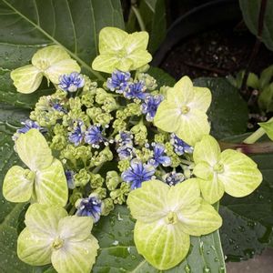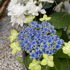 スリット鉢を買いに行っただけなのに、母の日の賑わいの園芸店は、魅惑でいっぱい💕 ん⁉︎こんな紫陽花見たことないぞ! 大島緑化?黄緑色のやさしい装飾花の中にブルーのお花がつぶつぶと。なんともかわいい💕 粉雪とミックスされた鉢でさわやか✨ これは持ち帰らねば、もう紫陽花植える場所ないよん💧 母の日のプレゼントにします。 ちょくちょく見に行かなくっちゃ❗️