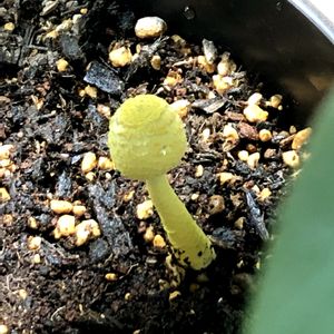 🌱こがねきぬからかさたけ! フィカスベンガレンシスに水やりしていたら、あらら、しめじくらいの黄色い茸が👀! 鮮やかな黄金色から『お釈迦さまのキノコ』や『幸運のキノコ』とも呼ばれる縁起の良いキノコなのだそう。 えへへ、いいことあるといいナ〜 😚