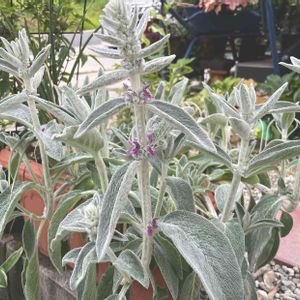 ラムズイヤー🐏 もこもこ可愛いけど、結構大きくなる🤔 この子は地植えにしたら怖いけど 寄せ植えは主張が強すぎる、、 みんなどうしてるのかなぁ?