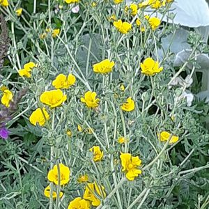 🌿シルバーの葉っぱと レモン色の小さな花がたくさんの、 ポテンティラ カラブラ♡ 冬の間、葉っぱは枯れずに 雪のかぶりものを着ながら春を待ちました 𓈒𓏸◌𓍯 どうやら 初夏まで 咲き続けてくれる勢いですね (ง ˆ̑ ‵̮ˆ̑)ว゛🌿