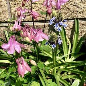 おはようございます😊 今日のお花 ①② 💠 オダマキ 💠 ③ 💠シラーベルビアナ💠 オダマキの横で咲き始めました🙌 ④ 💠オダマキ💠ホワイトは通勤路沿いで咲いてます。 ⑤ 💠スズランエリカ💠 まだまだ元気に咲いてます😄 5枚あります🌿 見てくださいね😊🎶💕︎