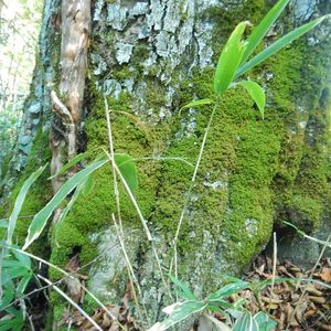 追加の一枚です 左にツル性の木の根っこの部分が見えていました ヤベフウさんからツルウメモドキの葉の可能性がありますとヒントをいただきました