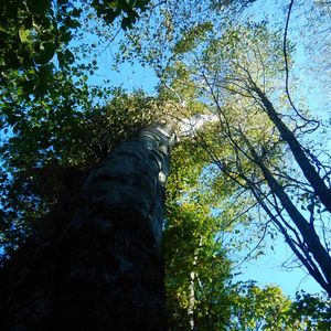 追加分、最後の一枚です 先程の直前のタイムスタンプですが、同じ木だったか覚えていません😅 こちらの樹肌はブナに見えます そして、この木から生えているように見える葉は、ツル性の木のものに思えます 理由は ①ブナの葉ではない ②ツルに沿って葉が生えているようなシルエット やはり、ツルウメモドキ?😆