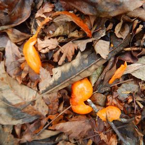 12月中旬、湖北の山を歩いていて、ふと足を止めました。前夜は激しい雨。霧が立ち込める中、登山道脇に浮かび上がったのは山ガキでした。 みなさん、一緒に謎解きしていただけますか? これはなあに? 1枚目です 湖北 標高700m