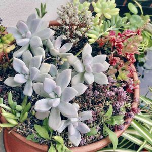 母に、何か玄関に寄せ植えをせいと仰せつかり、一年前くらいに作ったズボラ多肉丼です。あっ雑草生えてるw 朧月はキレイで丈夫で増えまくるから大好きです(*´-`)多肉で一番好きかも… これからも空きを見つけては様々なカット苗をぶち込んでいこうと思います✌︎('ω'✌︎ )
