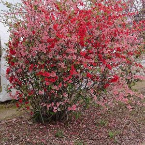 🌺ご近所さん所の木瓜の花 此でもかって位咲いてる、しかし派手だねー。 樹高2mくらいです。