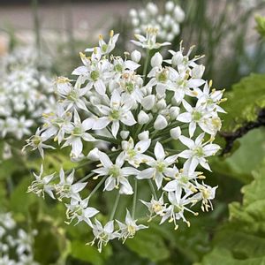 おはようございます☀ ニラの花🤍🤍💚 花火みたいだね〜🥰 綺麗〜に咲いた❣️ 新しい葉が出る様に カット✂️しまーす👍