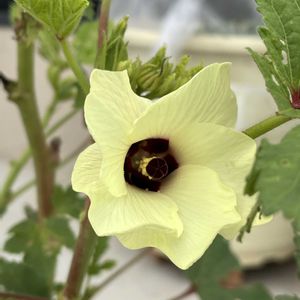 夏野菜の定番💛🖤 オクラさん❣️ 花が好き〜💛 実も大好きで〜す😋