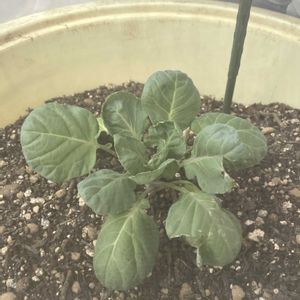芽キャベツ💚 大きな鉢ってないので! 二斗樽に植えましたよ〜 目の細かい綱を被せて🕸️ 2株で〜す💚 これから大きくなって❣️ 沢山成ってくれると💚 楽しみです🥰
