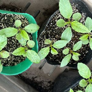 モロヘイヤ種蒔きっ子🟢 ポット蒔き4粒🌱 出たよ〜ん🌱🌱🌱🌱 これからが楽しみ〜🟢
